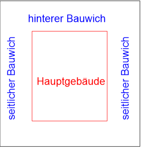 Bei der gekuppelten Bauweise ist zu beachten, dass der seitliche Bauchwich vom Nebengebäude freigehalten werden muss